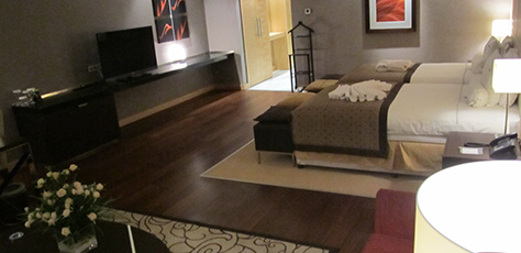 Fitted with parquet floors, this modern, air-conditioned room offers a seating area with white sofa. It includes a flat-screen TV, a work desk, a minibar and a complimentary tea and coffee station. The en-suite bathroom includes a walk-in rain shower, large bath tub and extensive bathroom amenities.